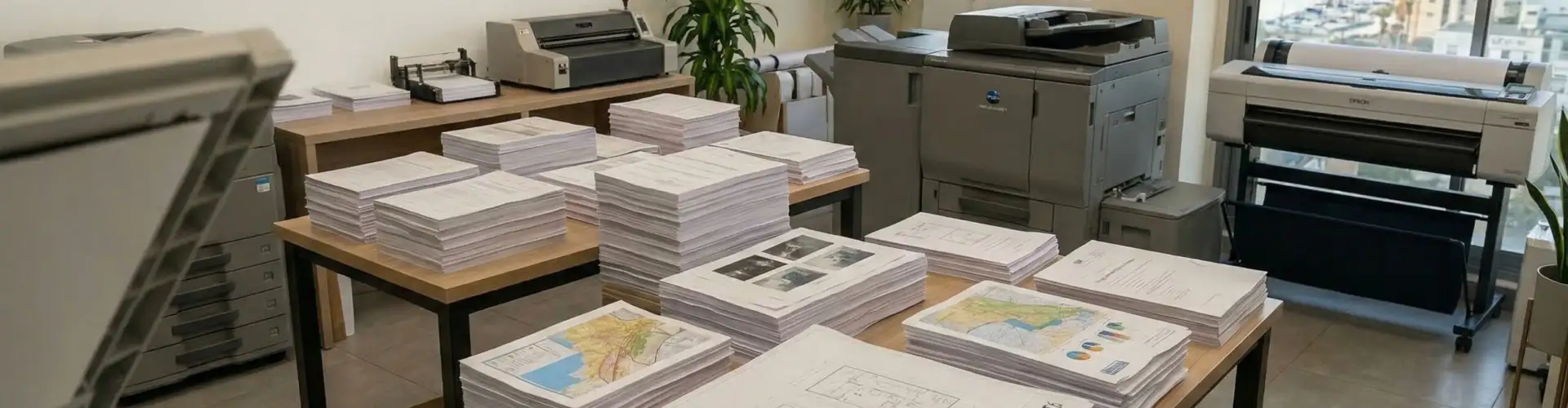 ציוד סריקה מתקדם ברזולוציה גבוהה, כולל סורקי פורמט רחב לתוכניות ושרטוטים, ומזיני מסמכים אוטומטיים לכמויות גדולות.