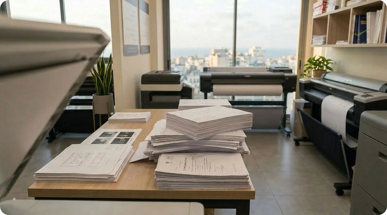 הביאו את המסמכים אלינו, או תאמו איסוף מהמשרד שלכם (לפרויקטים גדולים). אנחנו גם מקבלים חומרים בדואר.